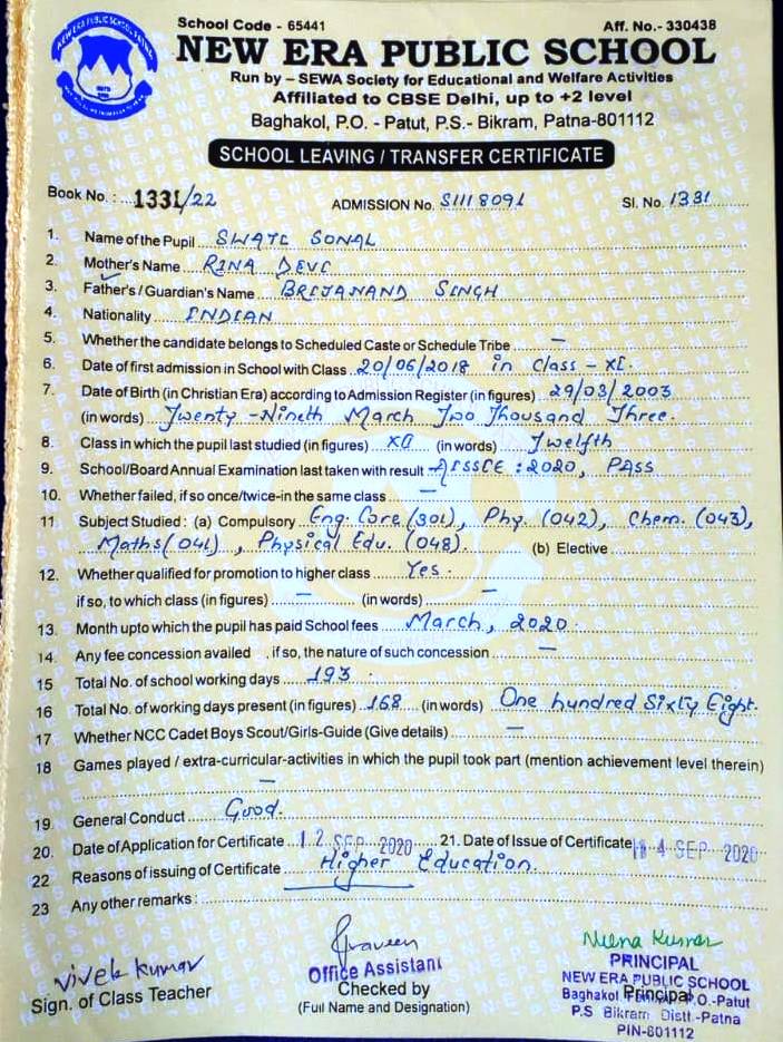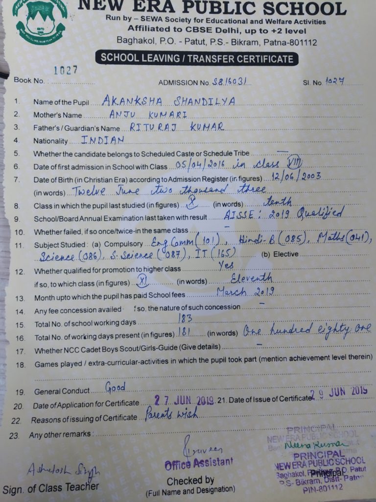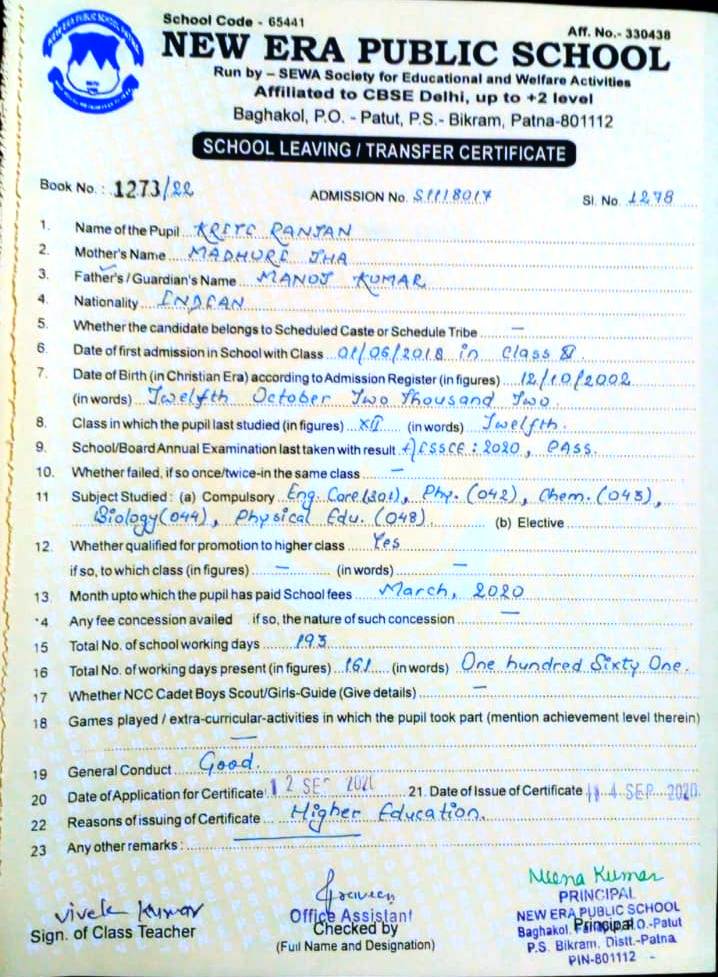 Akriti Kumari – XI-2020-21- TC Transfer Certificate / newerapublicschoolpatna newerapublicschoolpatna Akriti Kumari – XI-2020-21- TC Read More »