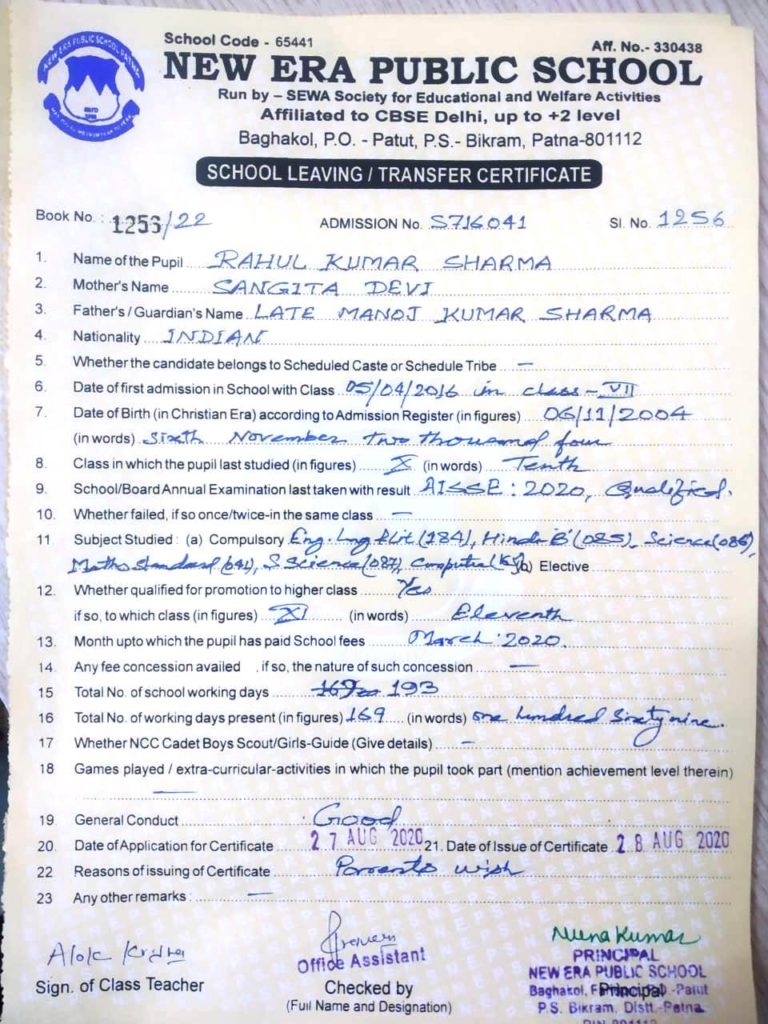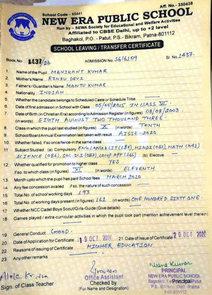 Rohit Kumar- Class-XI(2020-21)- TC Transfer Certificate / newerapublicschoolpatna newerapublicschoolpatna Rohit Kumar- Class-XI(2020-21)- TC Read More »